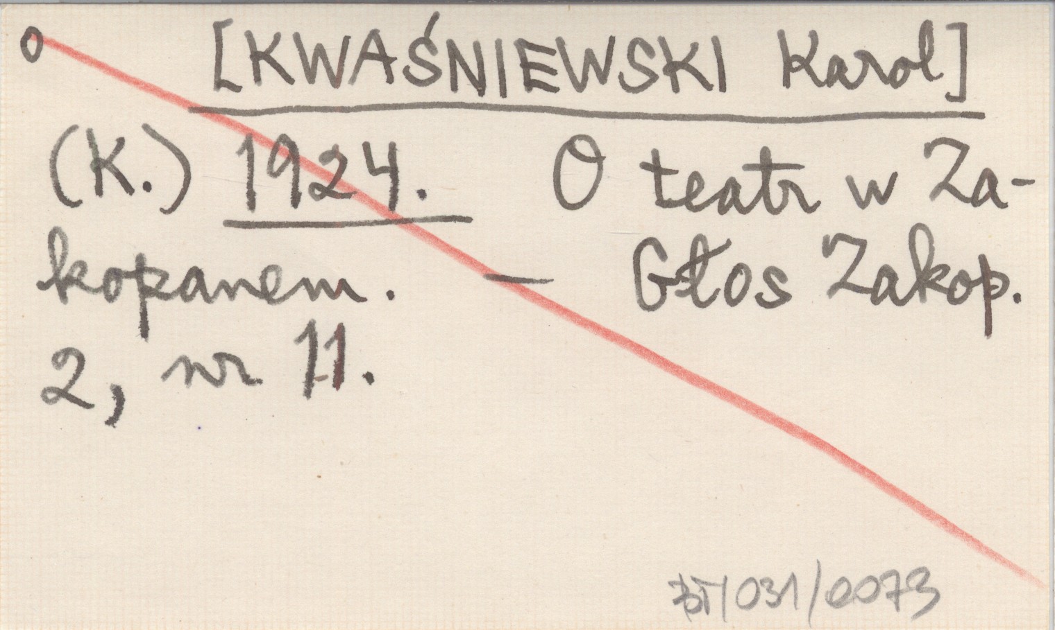 (K.) [KWAŚNIEWSKI Karol] 1924 O teatr w Zakopanem.
