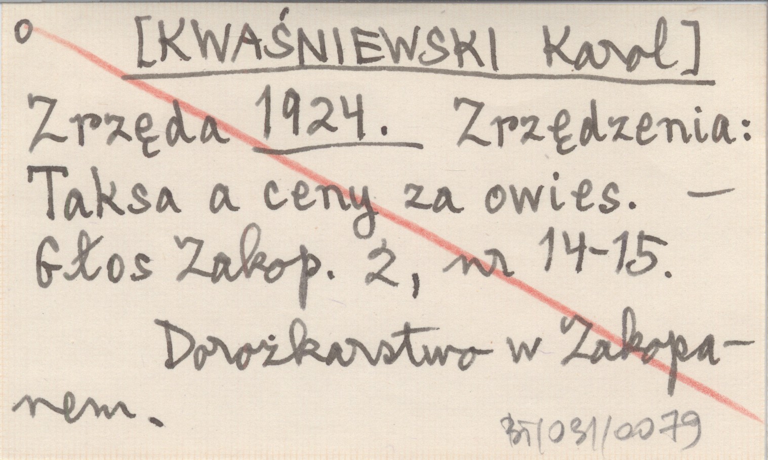 Zrzęda [KWAŚNIEWSKI Karol] 1924 Zrzędzenia: Taksa a ceny za owies.