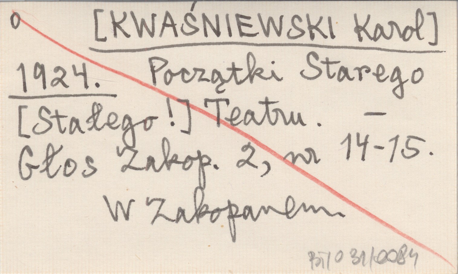 [KWAŚNIEWSKI Karol] 1924 Początki Starego [Stałego!] Teatru.