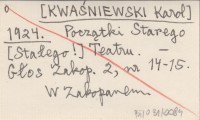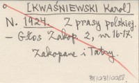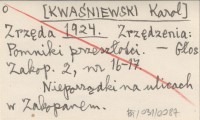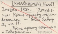 (K.) [KWAŚNIEWSKI Karol] 1924 Pod rozwagę.