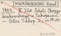 [KWAŚNIEWSKI Karol] 1924 II Zlot Sokoli Okręgu krakowskiego w Zakopanem.