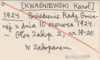 [KWAŚNIEWSKI Karol] 1924 Posiedzenie Rady Gminnej z dnia 10 czerwca 1924.