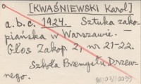 a. b. c. [KWAŚNIEWSKI Karol] 1924 Sztuka zakopiańska w Warszawie.