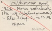 KWAŚNIEWSKI Karol 1924 Marsz podhalański. (Na nutę Sabałowego marsza).