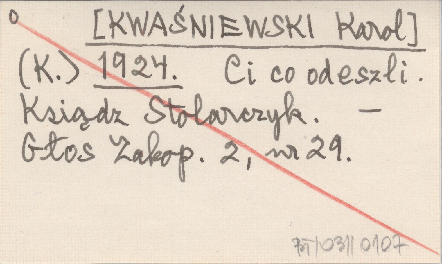 (K.) [KWAŚNIEWSKI Karol] 1924 Ci co odeszli. Ksiądz Stolarczyk.