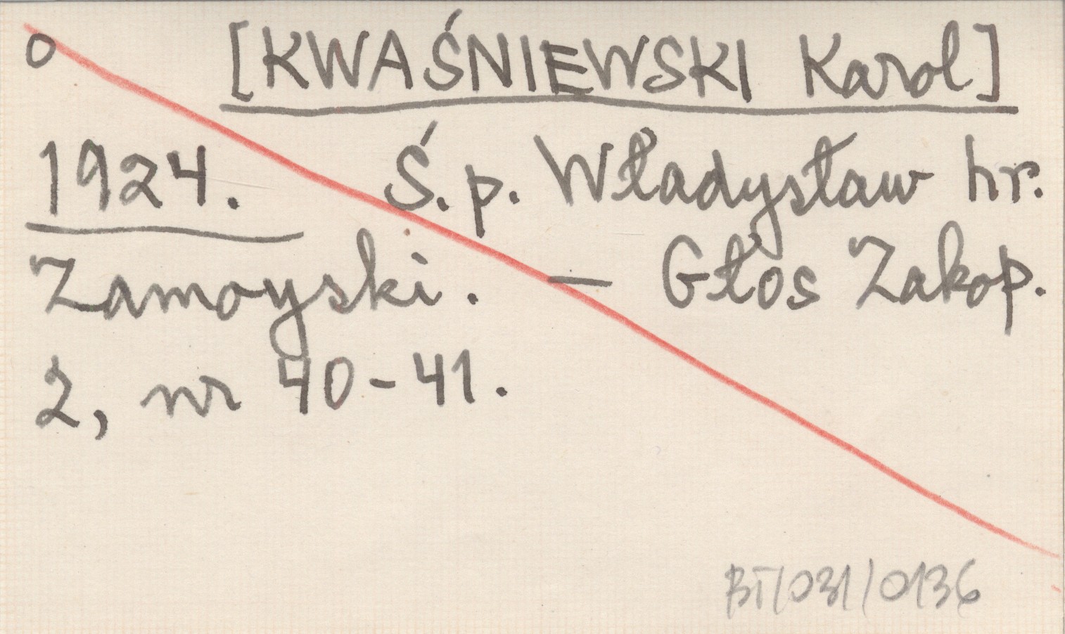 [KWAŚNIEWSKI Karol] 1924 Ś.p. Władysław hr. Zamoyski.