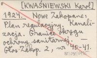 [KWAŚNIEWSKI Karol] 1924 Nowe Zakopane: Plan regulacyjny. Kanalizacja. Granice okręgu ochrony sanitarnej.