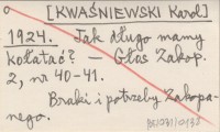 [KWAŚNIEWSKI Karol] 1924 Jak długo mamy kołatać?
