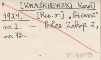 [KWAŚNIEWSKI Karol] 1924 [Rec. o:] "Giewont" nr 1.