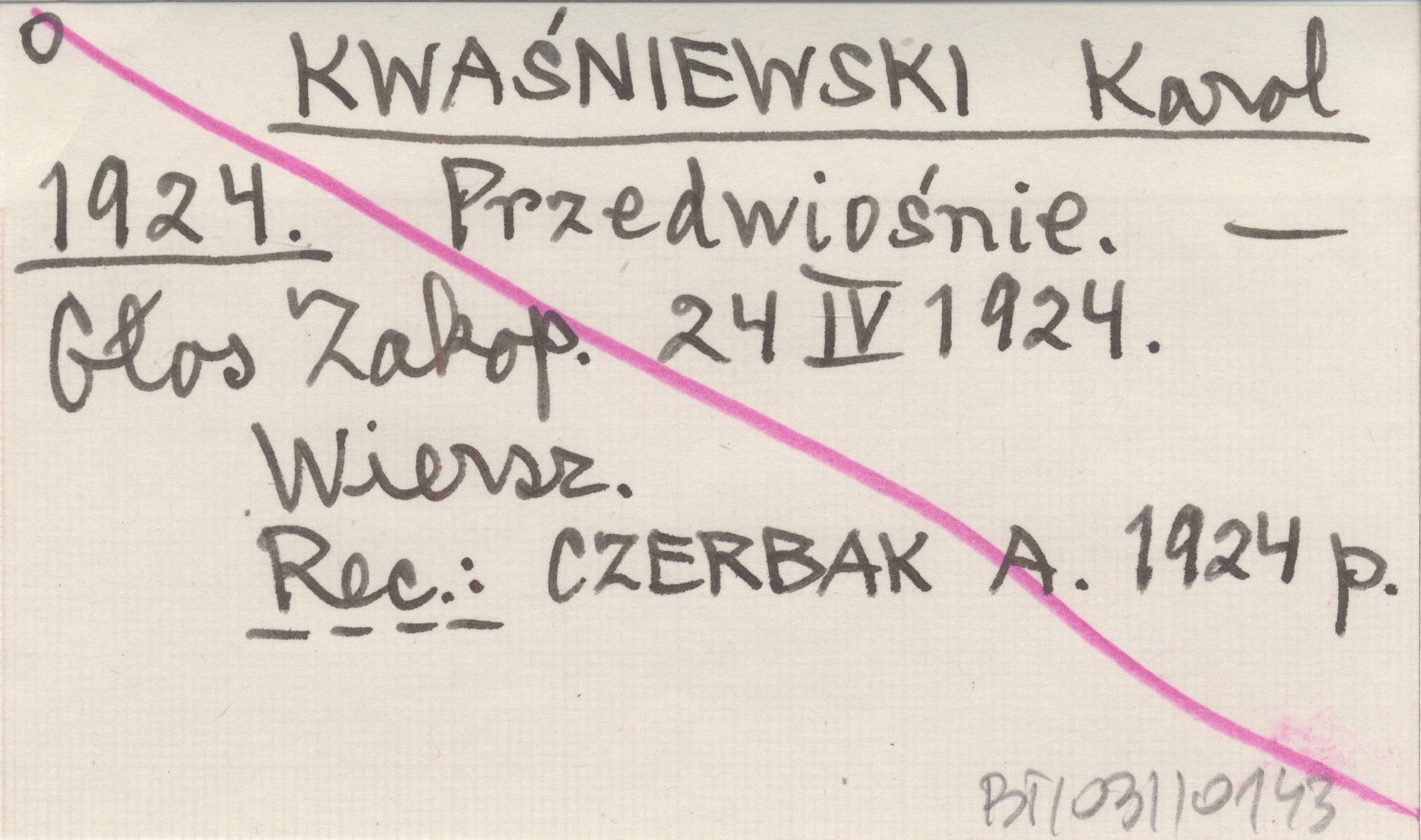 Głos Zakopiański, 24 IV 1924. Wiersz. REC: CZERBAK A. 1924 p