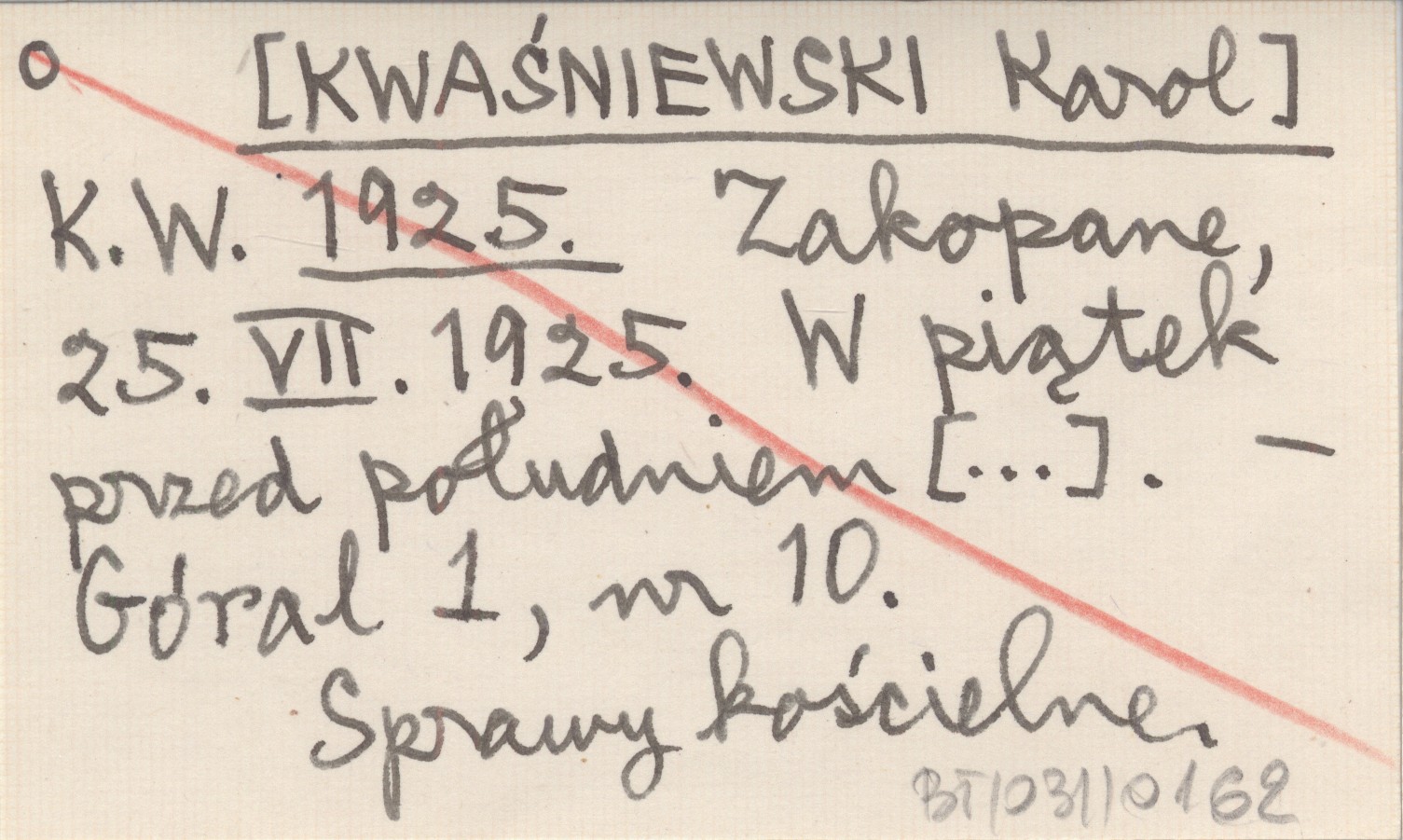 K. W. [KWAŚNIEWSKI Karol] 1925 Zakopane, 25 VII 1925. W piątek przed południem [...].