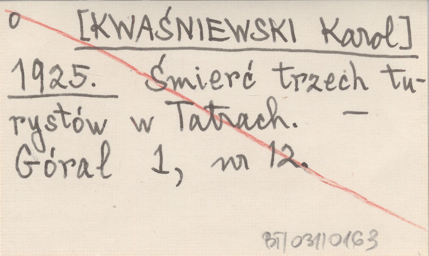 [KWAŚNIEWSKI Karol] 1925 Śmierć trzech turystów w Tatrach.