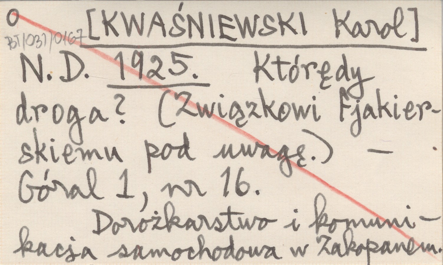 N. D. [KWAŚNIEWSKI Karol] 1925 Którędy droga? (Związkowi fjakierskiemu pod uwagę).