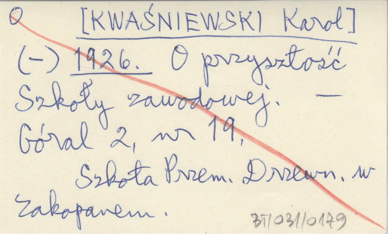 (-) [KWAŚNIEWSKI Karol] 1926 O przyszłość Szkoły zawodowej.