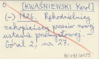 (-) [KWAŚNIEWSKI Karol] 1926 Rękodzielnicy zakopiańscy przeciw nowej ustawie przemysłowej.