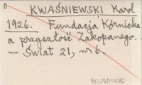 KWAŚNIEWSKI Karol 1926 Fundacja Kórnicka a przyszłość Zakopanego.