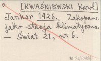 Jankar [KWAŚNIEWSKI Karol] 1926 Zakopane jako stacja klimatyczna.