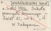 x. [KWAŚNIEWSKI Karol] 1926 Szkoła przemysłu drzewnego.