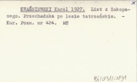 KWAŚNIEWSKI Karol 1927 List z Zakopanego. Przechadzka po lesie tatrzańskim.
