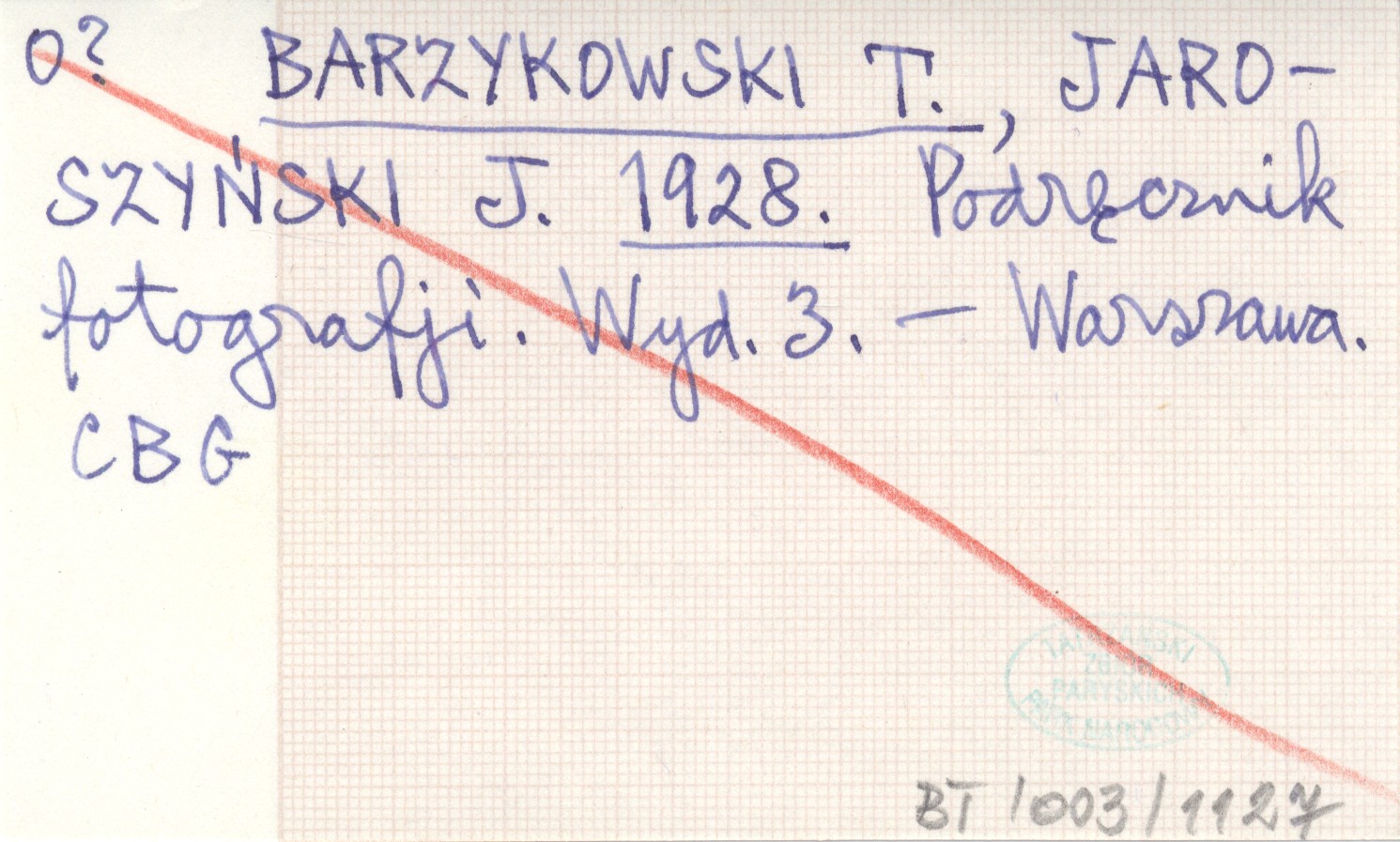 BARZYKOWSKI T. JAROSZYŃSKI, J. ; 1928 Podręcznik fotografii.
