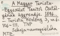 A Magyar Turista-Egyesület Tanitói Osztályának ügyrendje. 1896...
