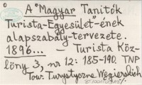 A "Magyar Tanitók Turista-Egyesület-ének alapszabály-tervezete. 1896...