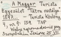 A Magyar Turista Egyesület "Tátra osztálya". 1897...