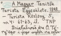 A Magyar Tanitók Turista Egyesülete. 1898...