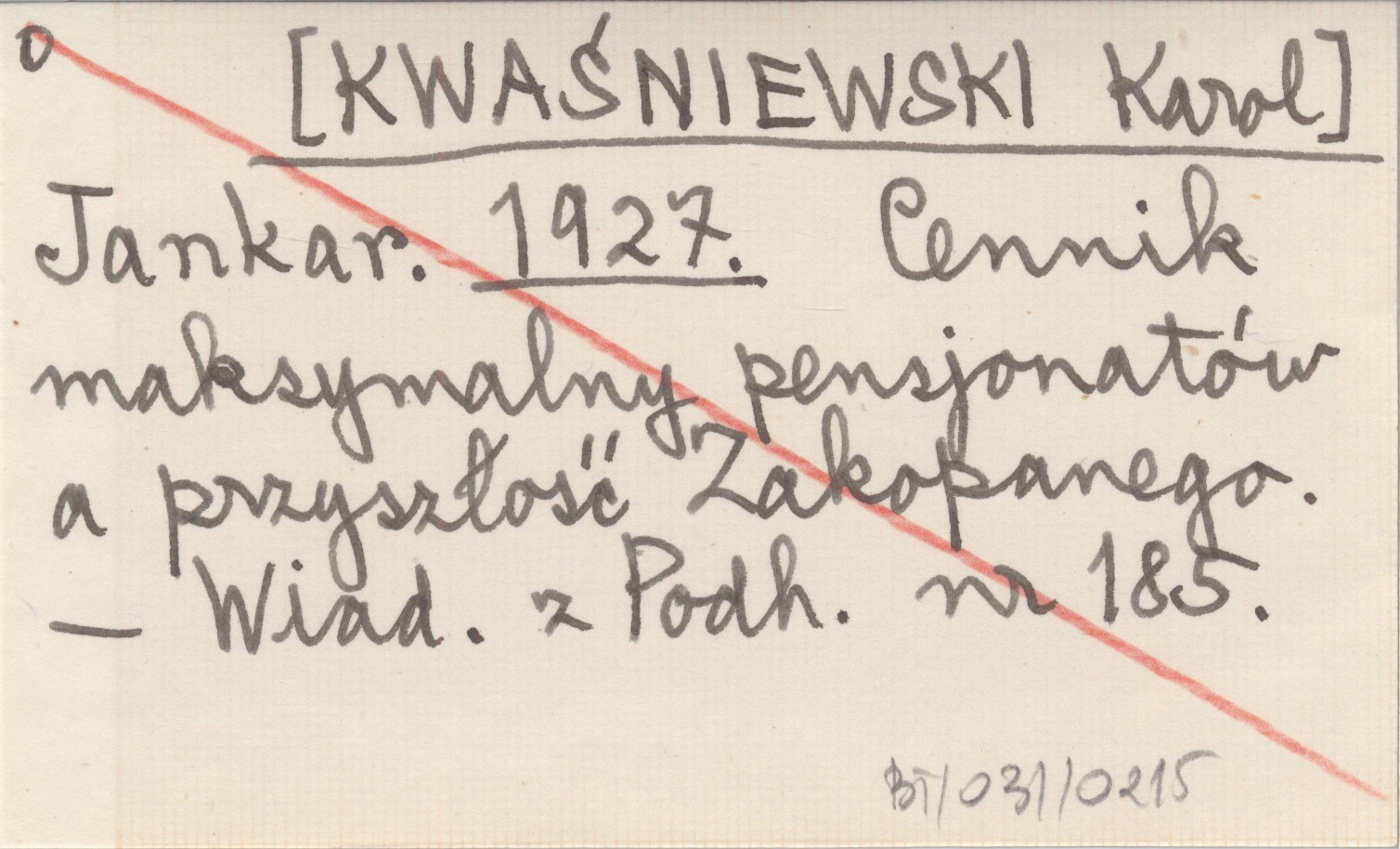 Jankar. [KWAŚNIEWSKI Karol] 1927 Cennik maksymalny pensjonatów a przyszłość Zakopanego.