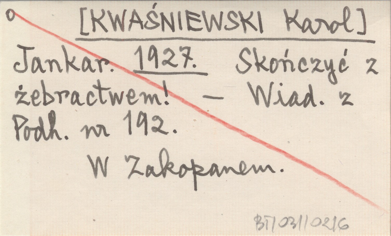 Jankar. [KWAŚNIEWSKI Karol] 1927 Skończyć z żebractwem!