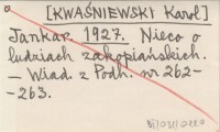 Jankar. [KWAŚNIEWSKI Karol] 1927 Nieco o ludziach zakopiańskich.