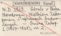 N. D. [KWAŚNIEWSKI Karol] 1927 Górale o Parku Narodowym, Wielkiem Zakopanem i sprawach budowlanych.