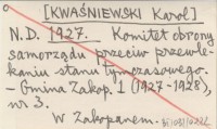 N. D. [KWAŚNIEWSKI Karol] 1927 Komitet obrony samorządu przeciw przewlekaniu stanu tymczasowego.