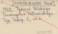 [KWAŚNIEWSKI Karol] 1928 Tydzień Polskiego Towarzystwa Tatrzańskiego.