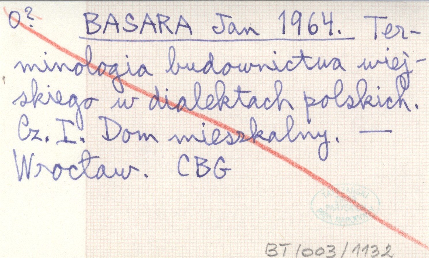 BASARA Jan 1964 Terminologia budownictwa wiejskiego w dialektach polskich. Cz. I. Dom mieszkalny.