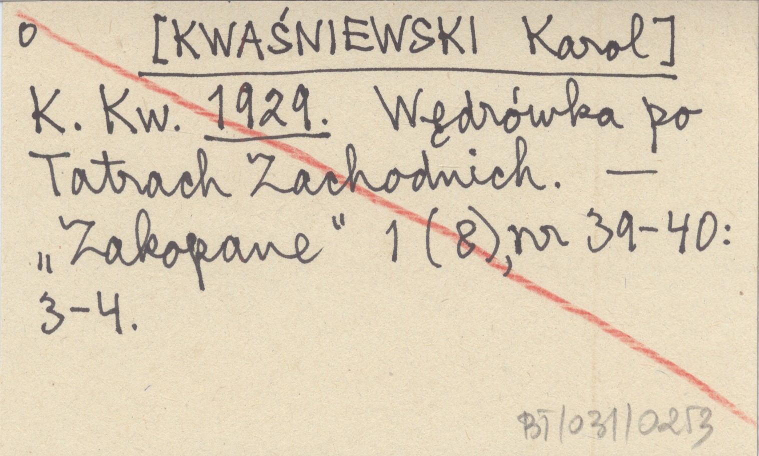 K. Kw. [KWAŚNIEWSKI Karol] 1929 Wędrówka po Tatrach Zachodnich.