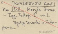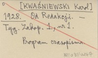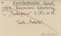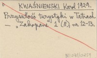K. Kw. [KWAŚNIEWSKI Karol] 1929 Wędrówka po Tatrach Zachodnich.