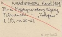 KWAŚNIEWSKI Karol 1929 III-ci Międzynarodowy Wyścig Tatrzański.