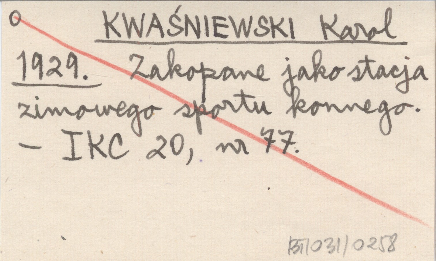 KWAŚNIEWSKI Karol 1929 Zakopane jako stacja zimowego sportu konnego.