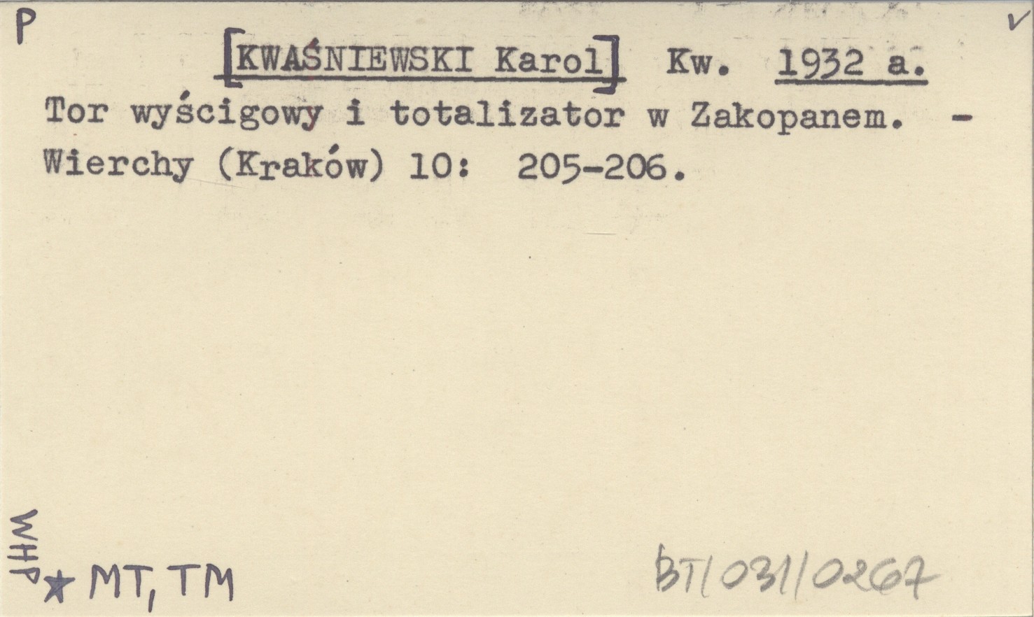 Kw. [KWAŚNIEWSKI Karol] 1932 a Tor wyścigowy i totalizator w Zakopanem.