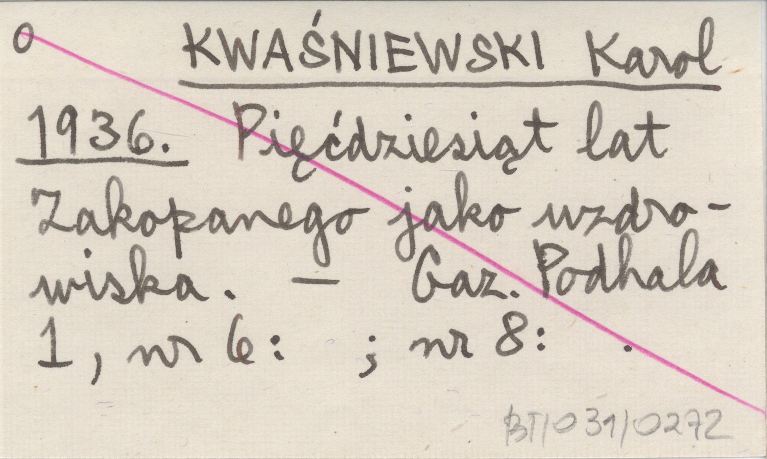 KWAŚNIEWSKI Karol 1936 Pięćdziesiąt lat Zakopanego jako uzdrowiska.