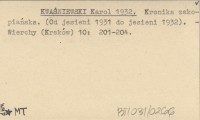 KWAŚNIEWSKI Karol 1932 Kronika zakopiańska. (Od jesieni 1931 do jesieni 1932).