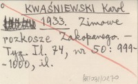 KWAŚNIEWSKI Karol 1933 Zimowe rozkosze Zakopanego.
