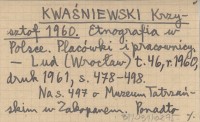 KWAŚNIEWSKI Krzysztof 1960 Etnografia w Polsce. Placówki i pracownicy.