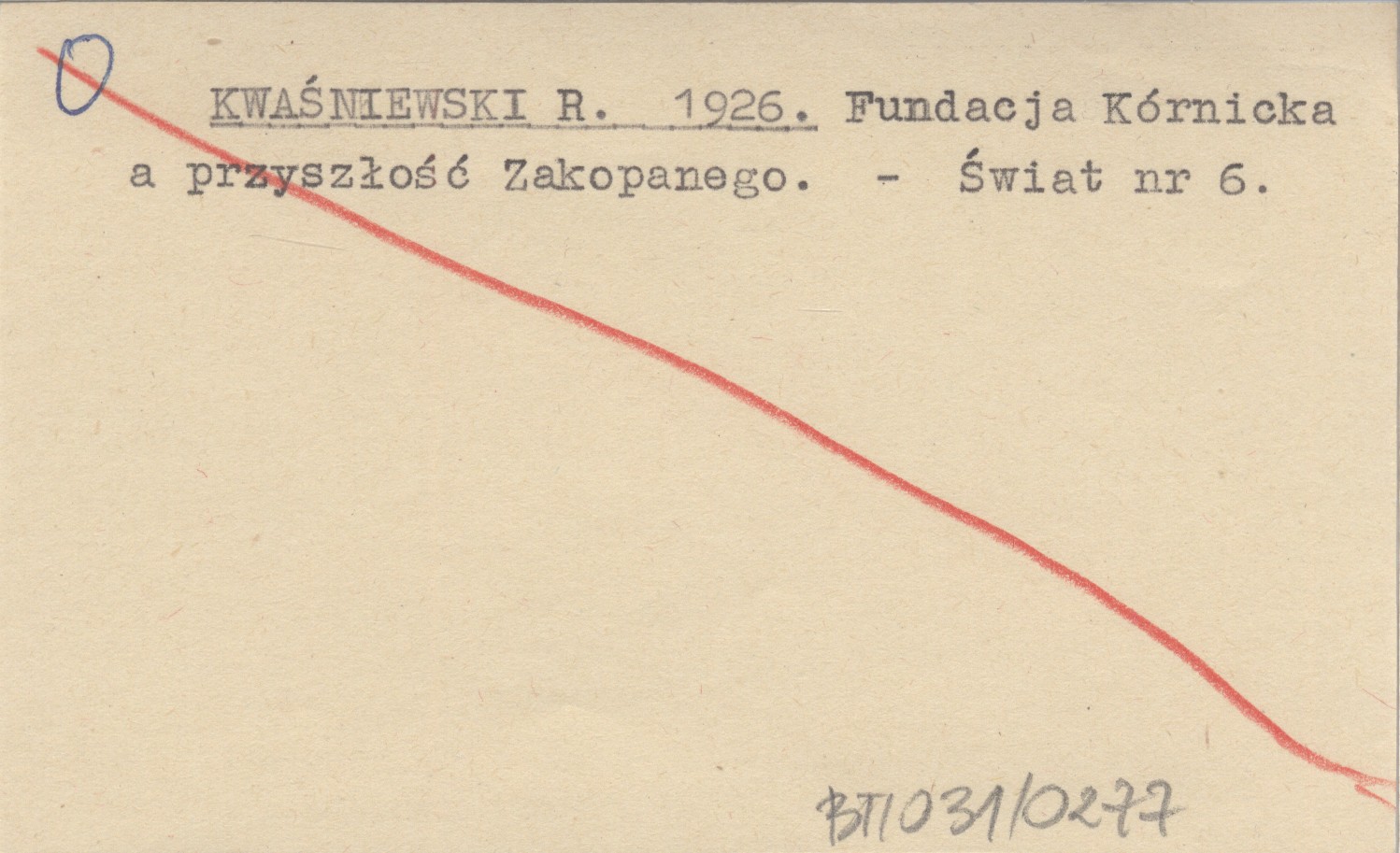 KWAŚNIEWSKI R. 1926 Fundacja Kórnicka a przyszłość Zakopanego.