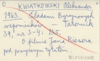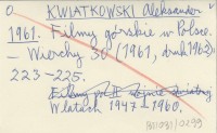 KWIATKOWSKI Aleksander 1961 Filmy górskie w Polsce.