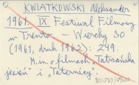 KWIATKOWSKI Aleksander 1961 IX Festiwal Filmowy w Trento.