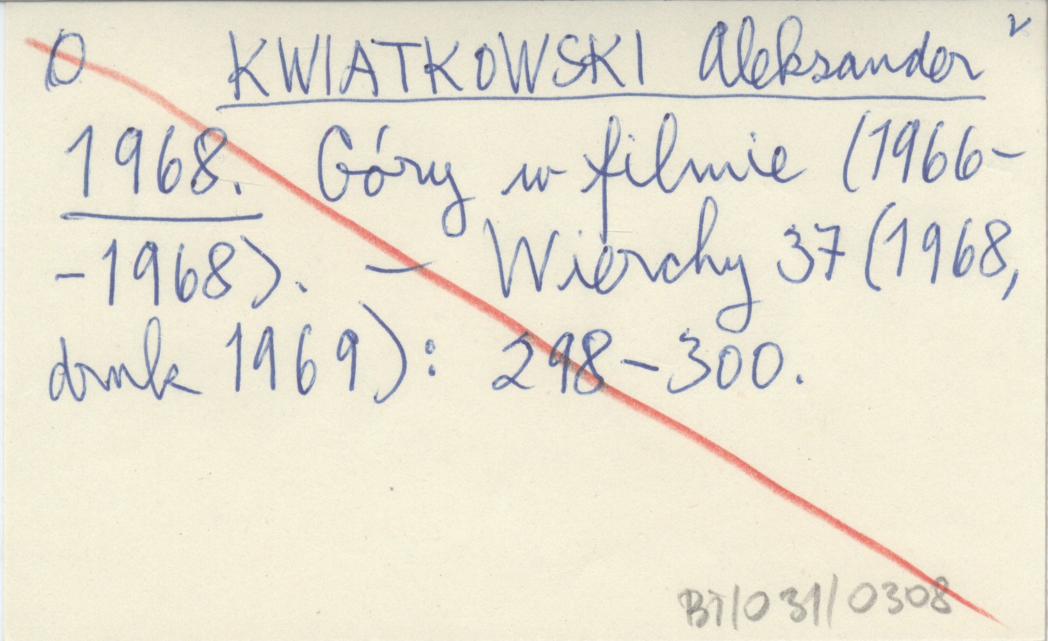 KWIATKOWSKI Aleksander 1968 Góry w filmie (1966-1968).