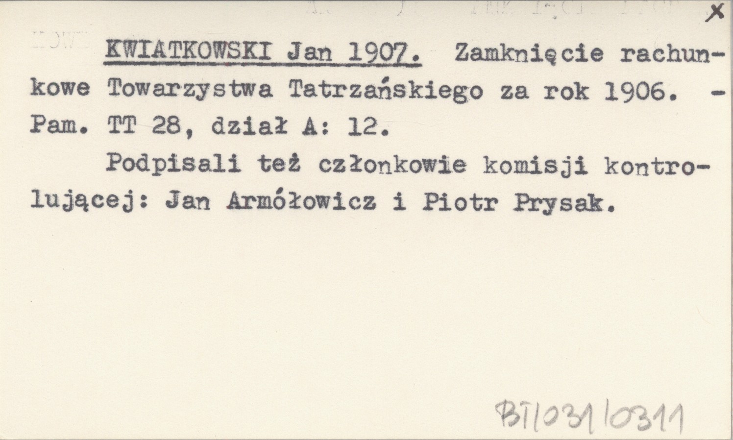 Pamiętnik Towarzystwa Tatrzańskiego, 28, dział A: 12. Podpisali też członkowie komisji kontrolującej: Jan Armółowicz i Piotr Prysak.