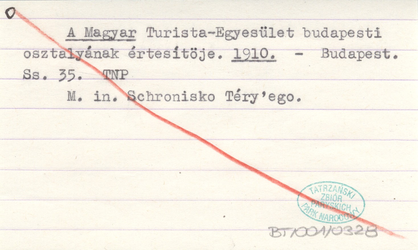 A Magyar Turista-Egyesület budapesti osztalyának értesítöje. 1910